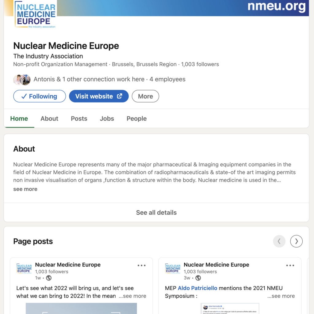 The Nuclear Medicine Europe Linkedin account has now reached more than 1000 followers!