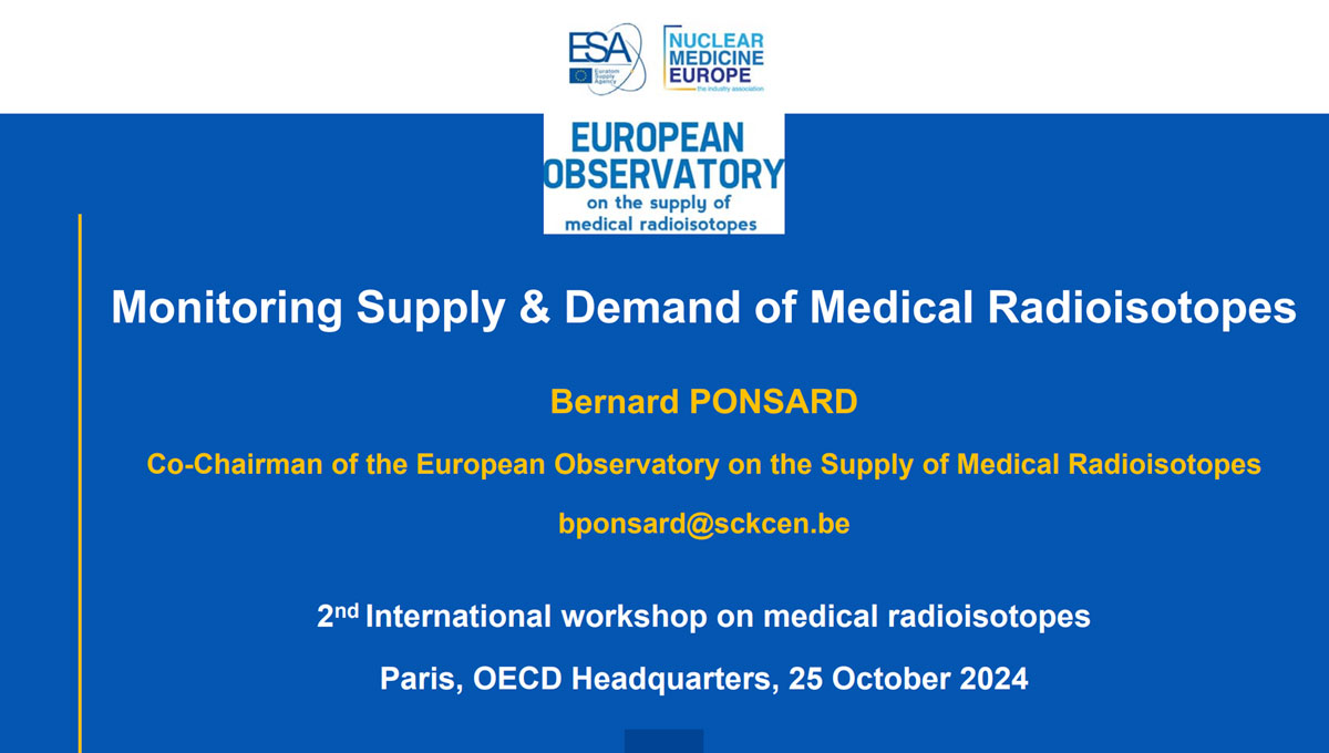 Since 2013, the Observatory is run by the Euratom Supply Agency (ESA); its meetings are co-chaired by Nuclear Medicine Europe.