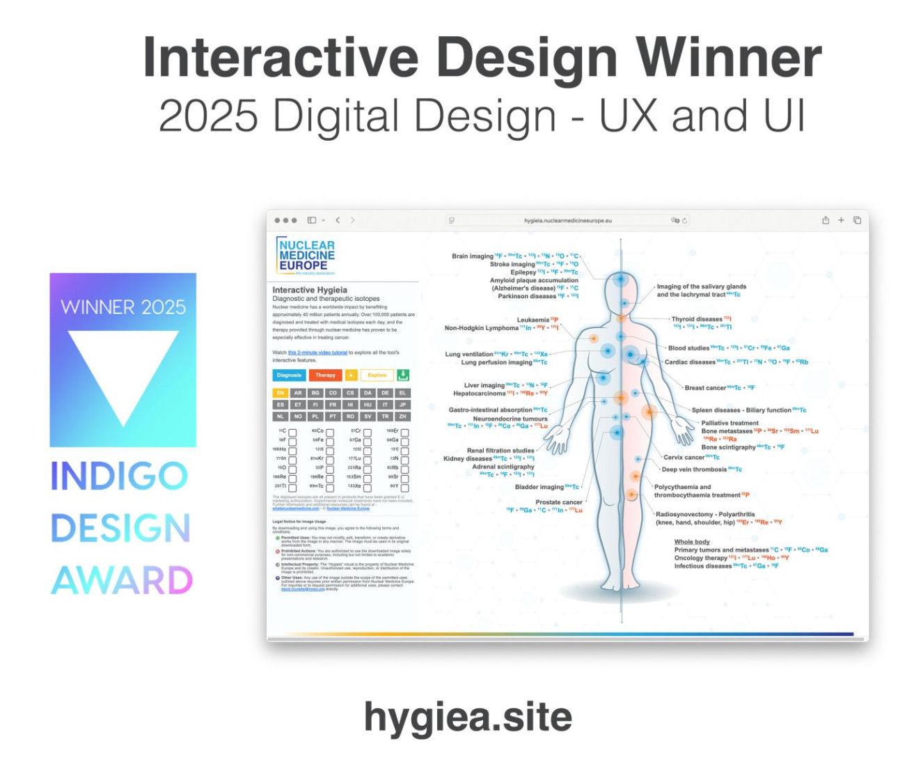 The very successful interactive Higieia has been recognised with an Interactive Design Award in the UX and UI Digital Design category of the Indigo Design Award. This distinction highlights the project’s excellence in delivering an intuitive and user-friendly experience, reaffirming its effectiveness as a digital design solution.
